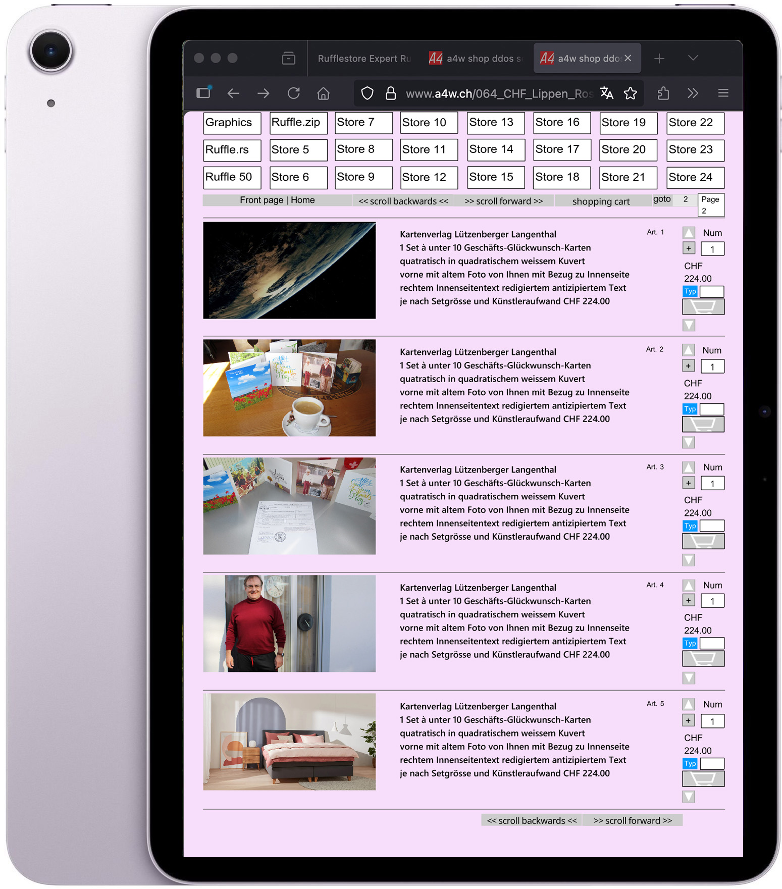 Ruffleshop Lippen Rosa and iPad Purple / Sparen Sie in den nächsten 30 Jahren genau 10800.- Euro Franken Betriebskosten (pro Monat 30.-). Beim Ruffleshop (Shopsoftware) gibt es keine (Betriebs-)Kosten! Die Firefox-Erweiterung ist dann bereits ab Gerätekauf standardmässig im Firefox voraus eingebettet, was den Ablauf verschönert im Firefox bezüglich Ruffleshop-Abrufs (ohne Pfeil, es lädt automatisch ohne Klicken auf den Standardpfeil). Wobei das Klicken auf den Pfeil im Safari ist auch schön!