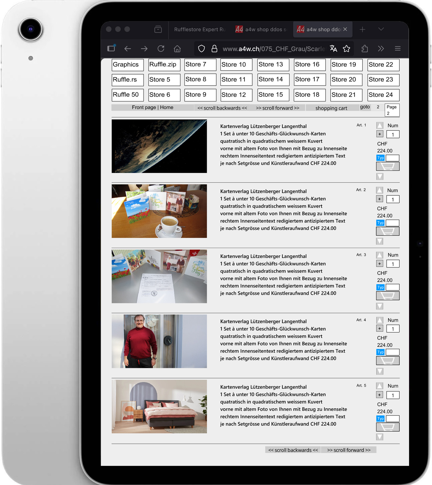 Ruffleshop Grau and iPad Silber / Sparen Sie in den nächsten 30 Jahren genau 10800.- Euro Franken Betriebskosten (pro Monat 30.-). Beim Ruffleshop (Shopsoftware) gibt es keine (Betriebs-)Kosten! Die Firefox-Erweiterung ist dann bereits ab Gerätekauf standardmässig im Firefox voraus eingebettet, was den Ablauf verschönert im Firefox bezüglich Ruffleshop-Abrufs (ohne Pfeil, es lädt automatisch ohne Klicken auf den Standardpfeil). Wobei das Klicken auf den Pfeil im Safari ist auch schön!