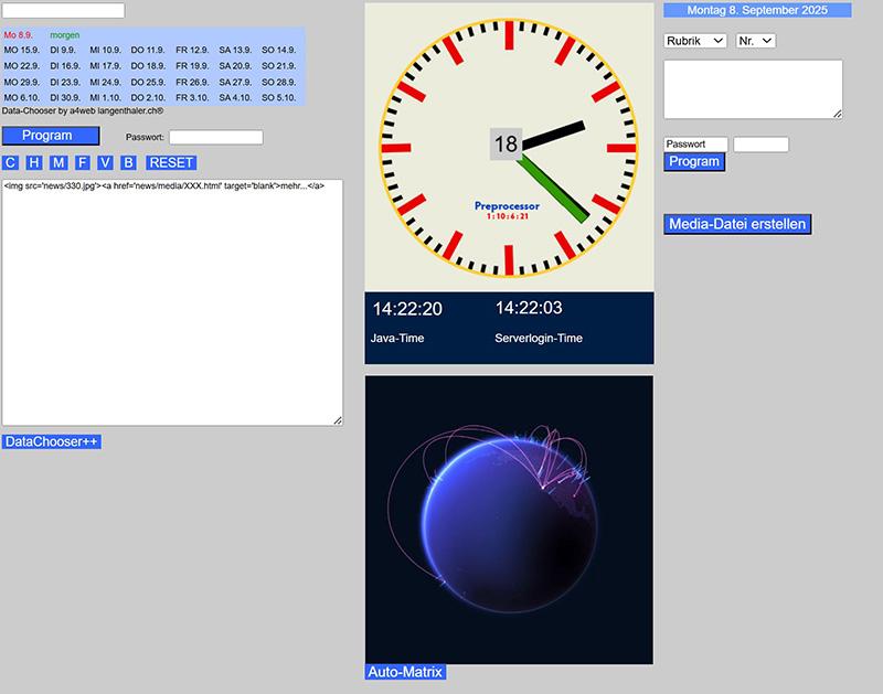 Schlussendlich verknüpft man die neue Layout-generierte Datei hoch oben auf den Netz im «Media»-Ordner dann noch mit unserem Auto-Matrix-Manager mit dem Artikel-Text, der im php-Redaktionsmanager abgespeichert worden ist (siehe Foto1 und Foto2).